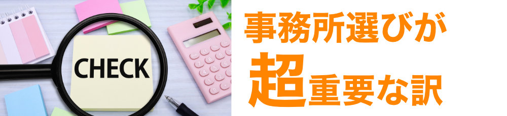 特に以下の3点に注目して、事務所は慎重に選ぶ必要があります。